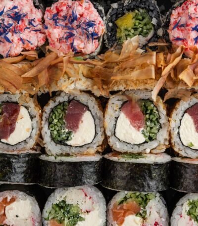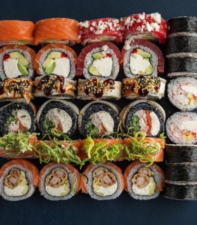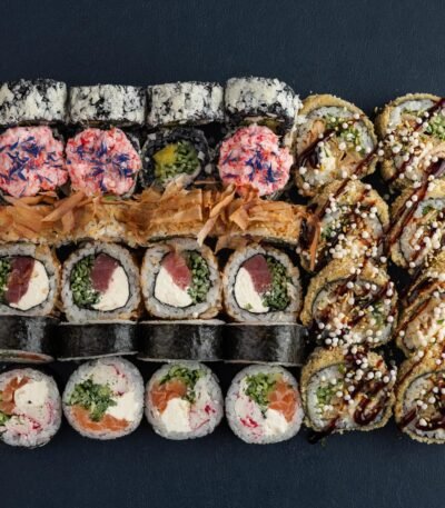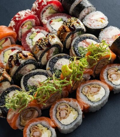 Класичні роли: Боніто з тунцем, Футумаки з лососем та сурімі, Темпура з вугрем та авторський рол Чорне Сонце